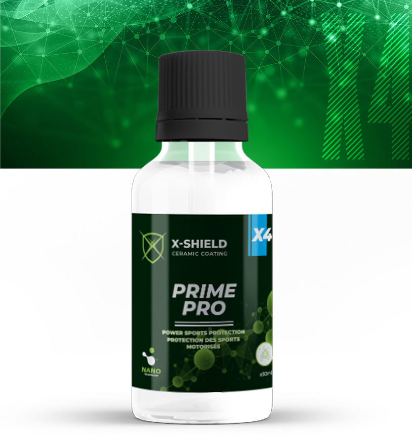 X4 Prime Pro is built for off-road toughness, shielding powersport vehicles against elements. With advanced Polysilazane technology, Prime Pro delivers a glossy, hydrophobic finish. with powerful resistance to chemicals, UV exposure, and rough terrain. Prime Pro features a non-stick surface that facilitates easy maintenance and cleaning.